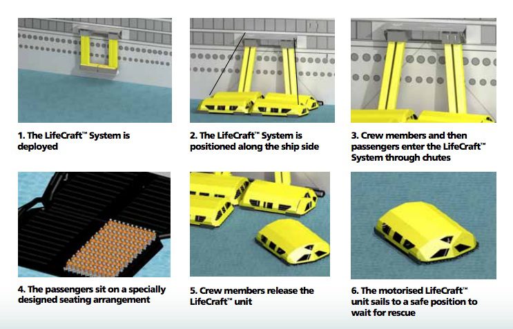 With that in mind, Danish marine and fire safety equipment-maker VIKING has developed a new type of high-capacity evacuation system that is said to combine the advantages of both lifeboats and liferafts into one hybrid solution for large cruise vessels.